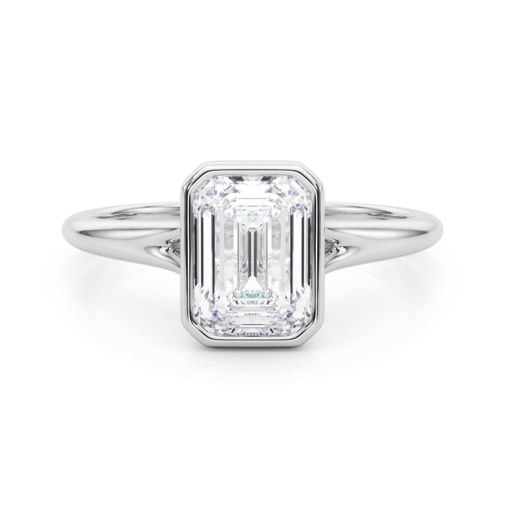 Platinum Bezel Set Emerald Cut Solitaire Ring with Tapered Band