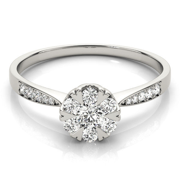 Platinum Cluster Oval Diamond Pavé Band Flower Prong Setting Ring