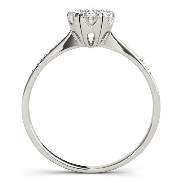 Platinum Cluster Round Diamond Pavé Band Flower Prong Setting Ring