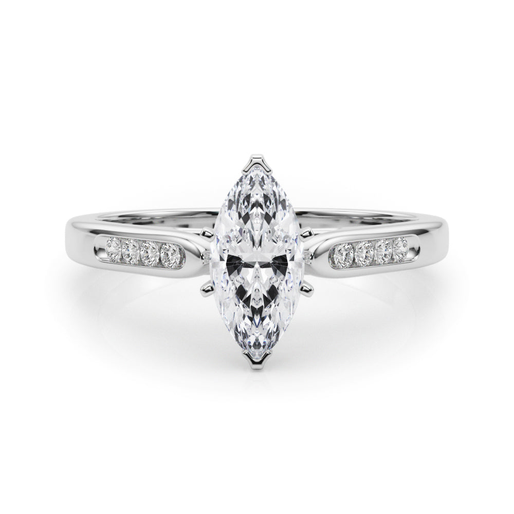 Platinum Marquise Cut Channel Set Solitaire Engagement Ring with Four-Prong Setting