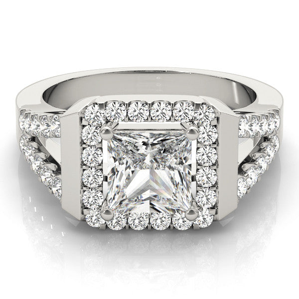 Platinum Princess Cut Halo Split Shank Prong Set Ring