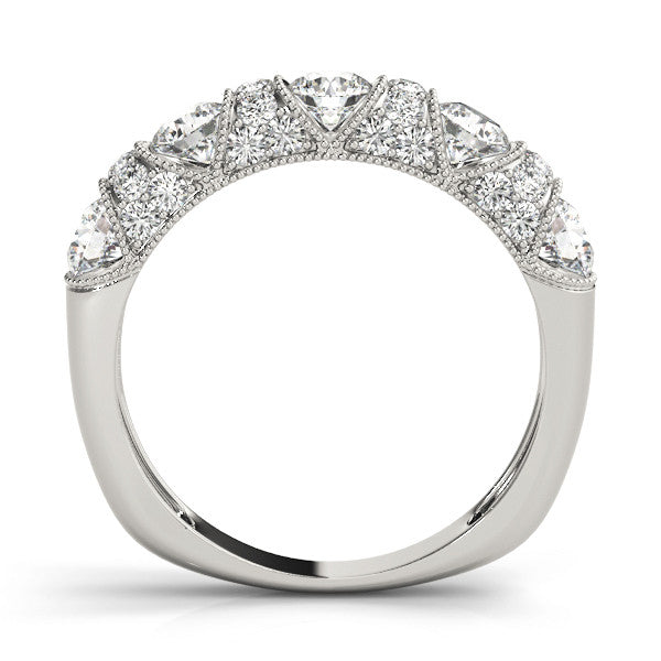 Platinum Round Cut Milgrain Diamond Half Eternity Band with Pave Setting