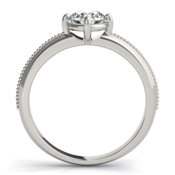 Platinum Round Solitaire Beaded Band with Four-Prong Setting
