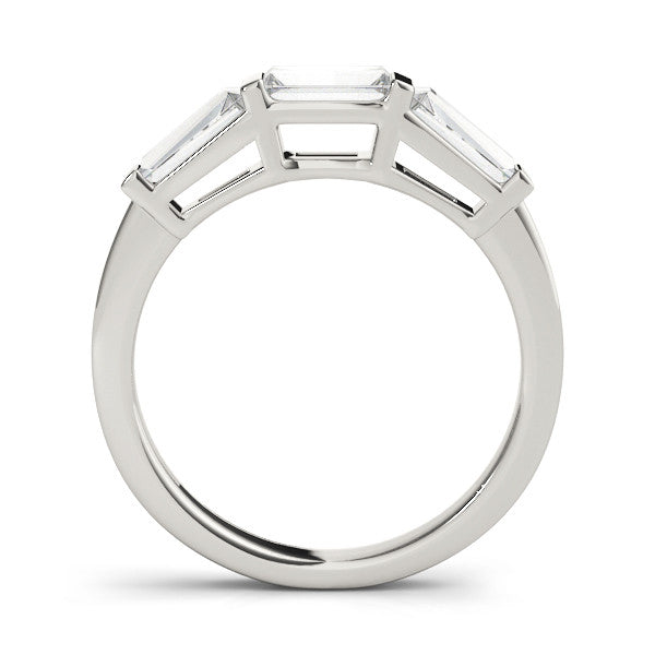 This exquisite band features a sophisticated design with three stunning baguette-cut diamonds set in a sleek channel setting. The elegant white gold band complements the geometric shapes of the stones, creating a timeless and modern look. Perfect for any occasion, this band combines classic charm with contemporary style, making it a versatile and elegant addition to any jewelry collection.