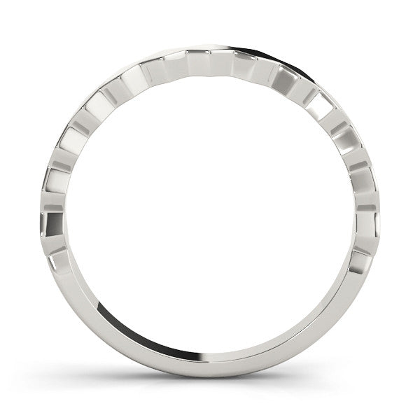 This unique Zigzag Chevron Band features a modern, geometric design with a distinctive zigzag pattern along the band. Crafted in sleek, polished metal, the band showcases a contemporary style without any stone settings, making it perfect for those who appreciate minimalist elegance. The absence of prong settings highlights the bold zigzag shape, creating a striking and eye-catching piece that can be worn alone or stacked with other rings for a personalized look.