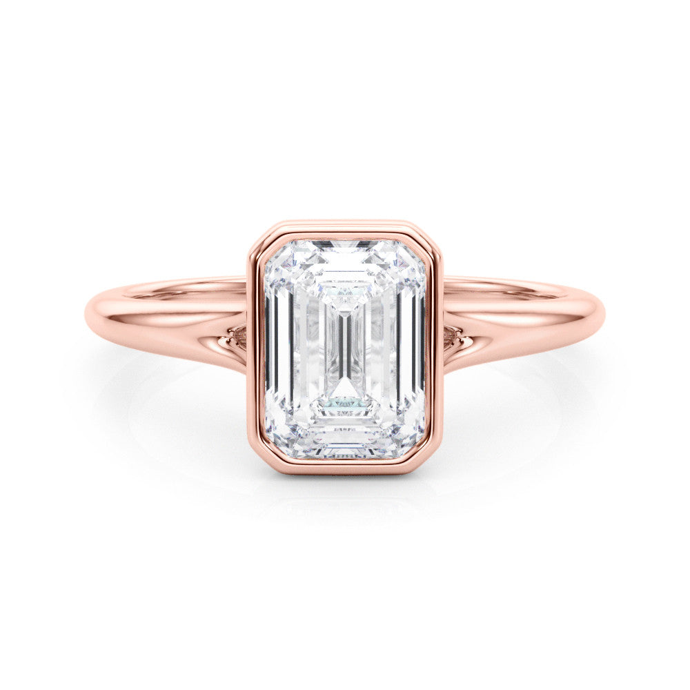 Rose gold Bezel Set Radiant Cut Solitaire Ring with Tapered Band