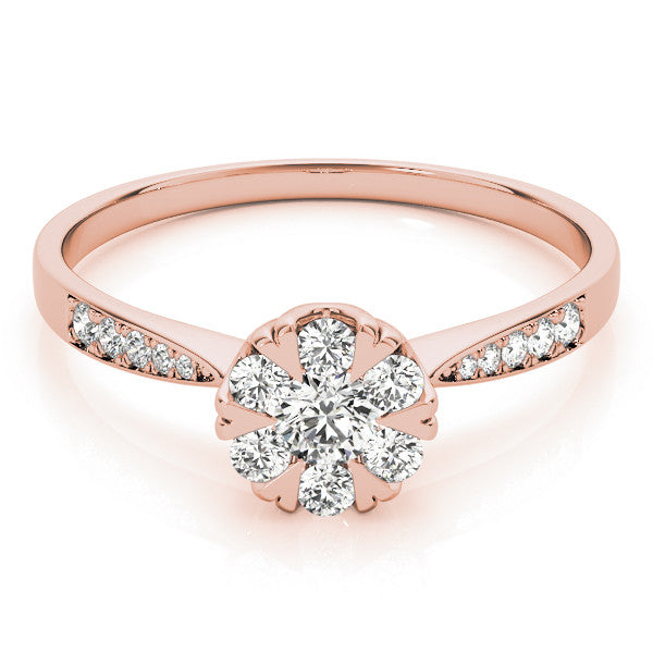 Rose gold Cluster Emerald Diamond Pavé Band Flower Prong Setting Ring