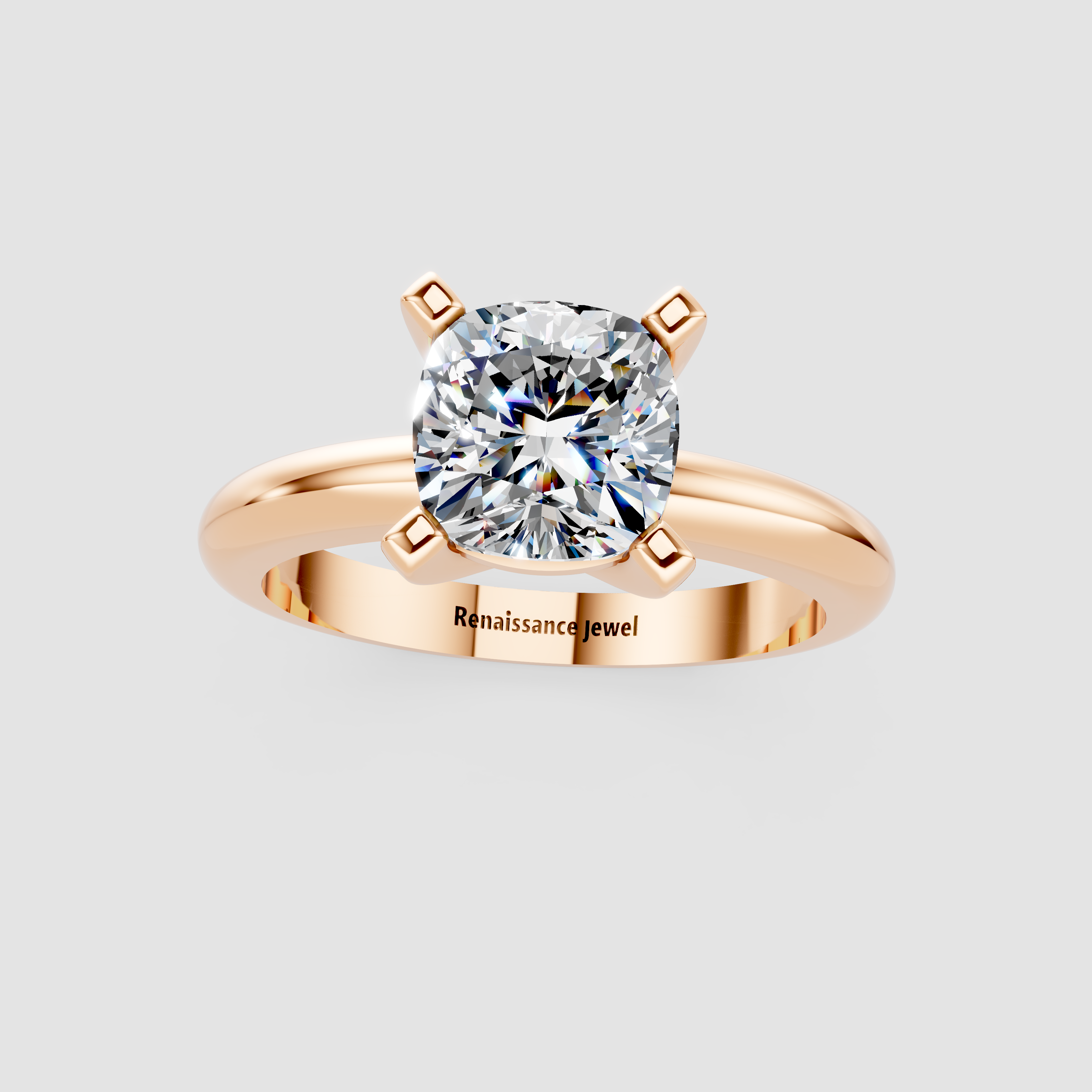 Rose gold Cushion Cut Solitaire Engagement Ring with Round Band and Four-Prong Setting
