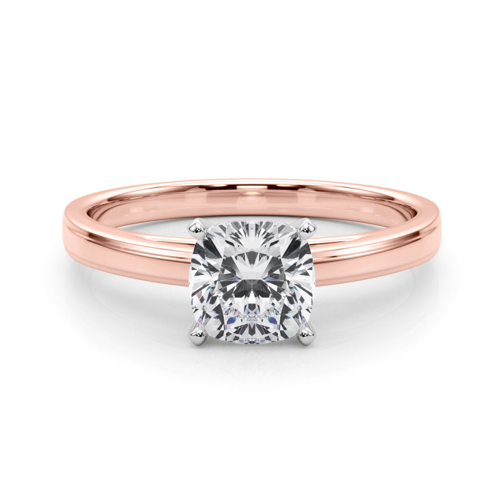 Rose gold Cushion Solitaire Diamond Ring with Four-Prong Setting and Classic Band