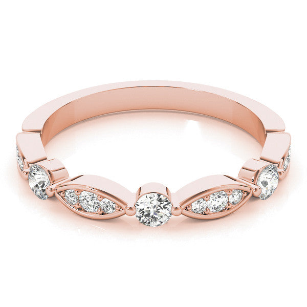 Rose gold Marquise and Round Diamond Milgrain Band with Bezel Setting