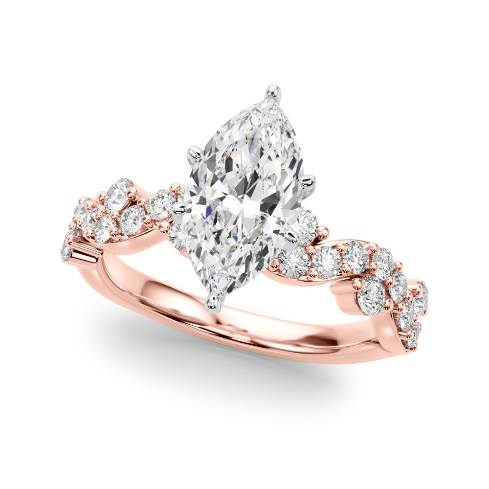 Rose gold Marquise Cut Solitaire Diamond Twisted Band with Pave Setting