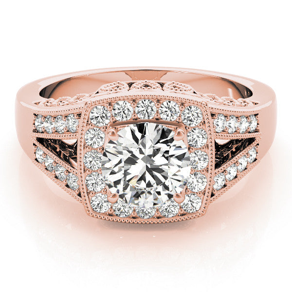 Rose gold Marquise Halo Split Shank Diamond Ring with Milgrain Prong Setting