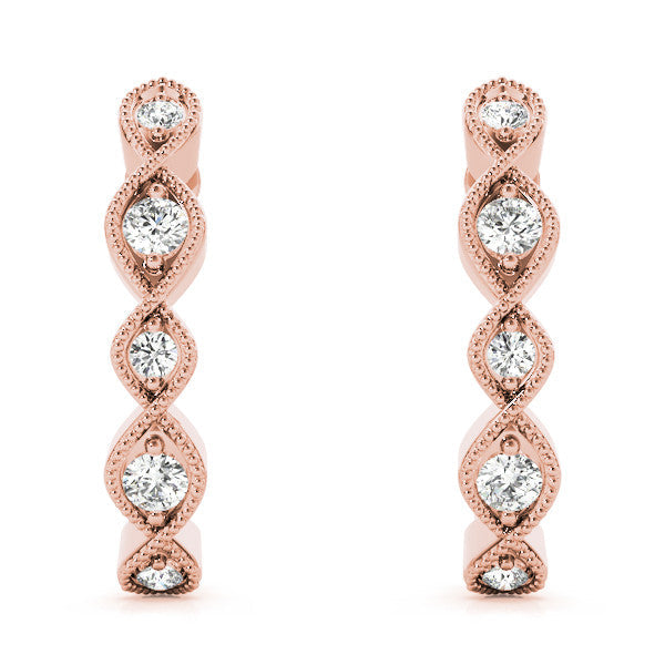 Rose gold Milgrain Marquise Diamond Hoop Earrings with Bezel Setting