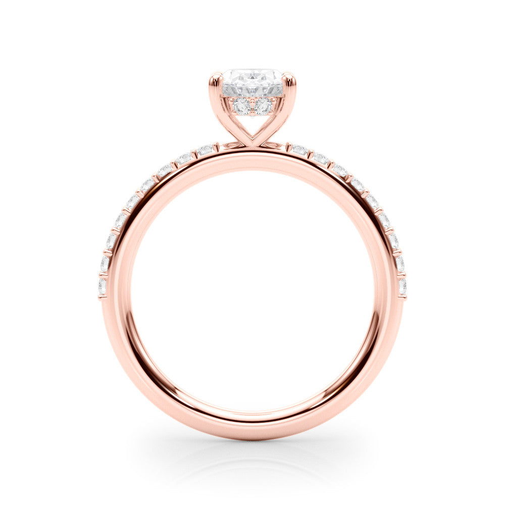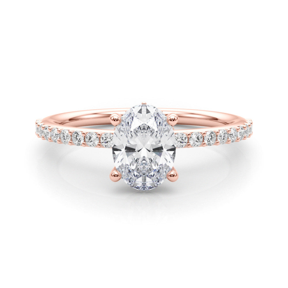 Rose gold Oval Cut Diamond Pavé Band with Four-Prong Setting