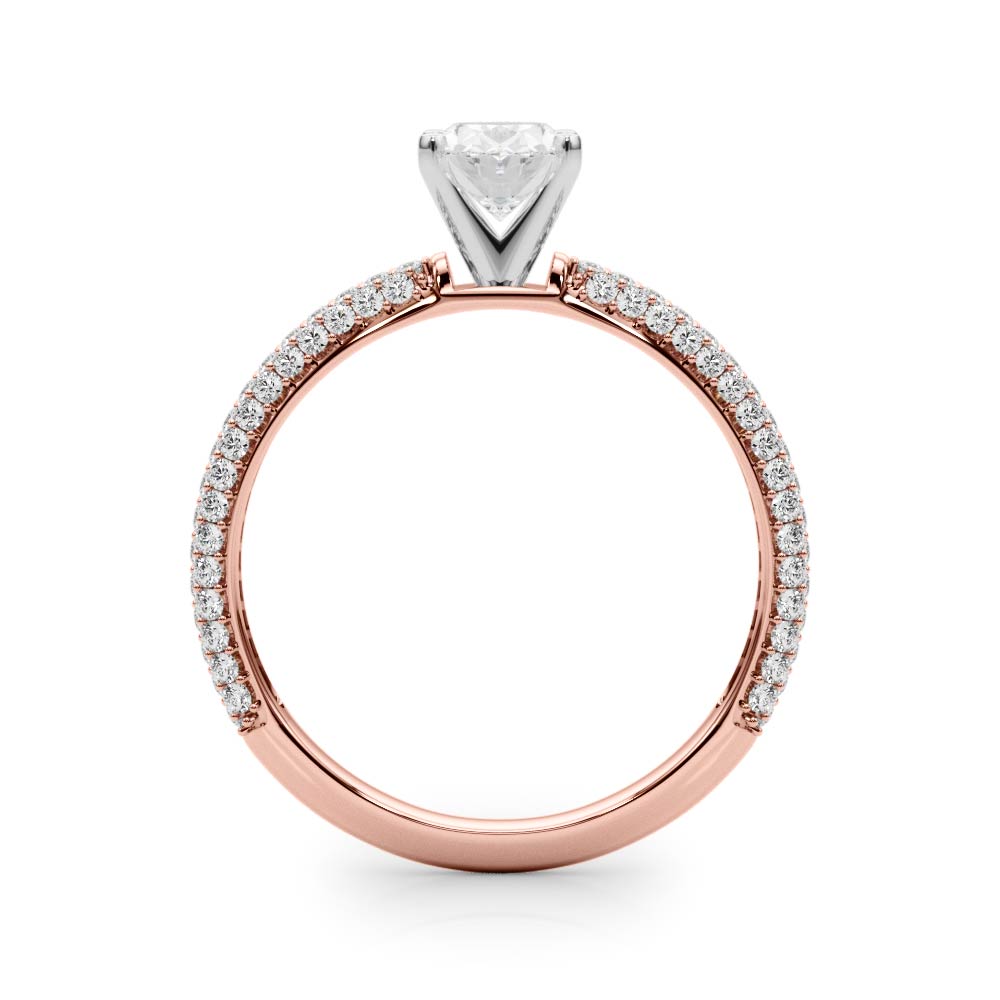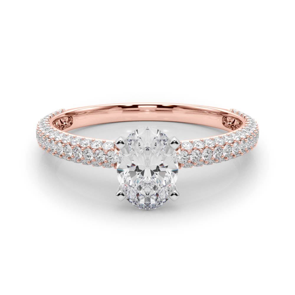 Rose gold Oval Solitaire with Pave Band and Four-Prong Setting