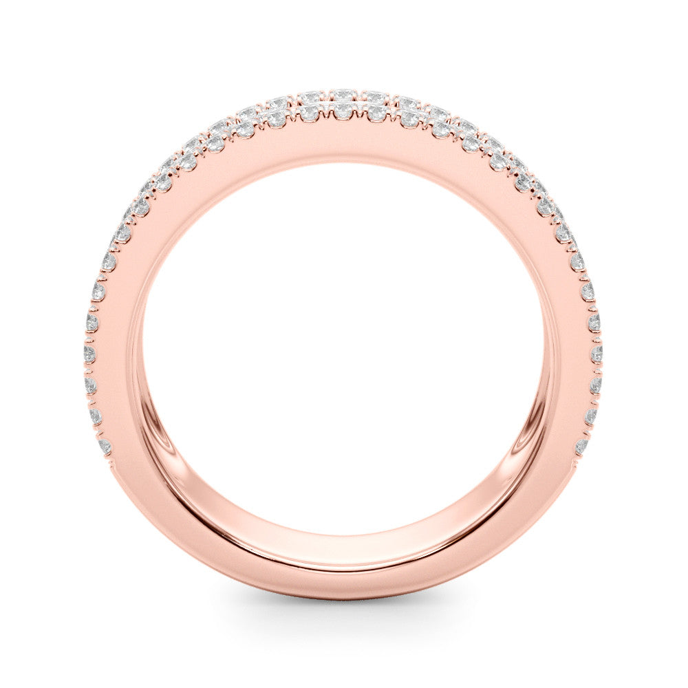 Rose gold Pave Round and Baguette Diamond Eternity Band with Channel and Prong Setting