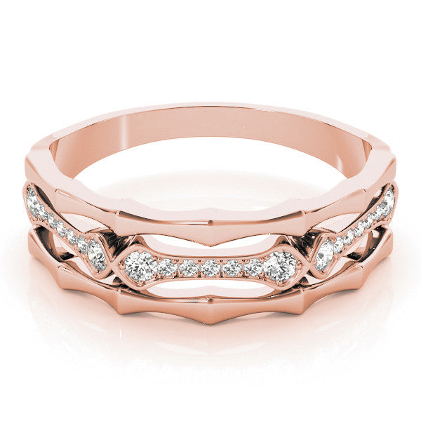 Rose gold Pavé Round Diamond Eternity Band with Bar Prong Setting