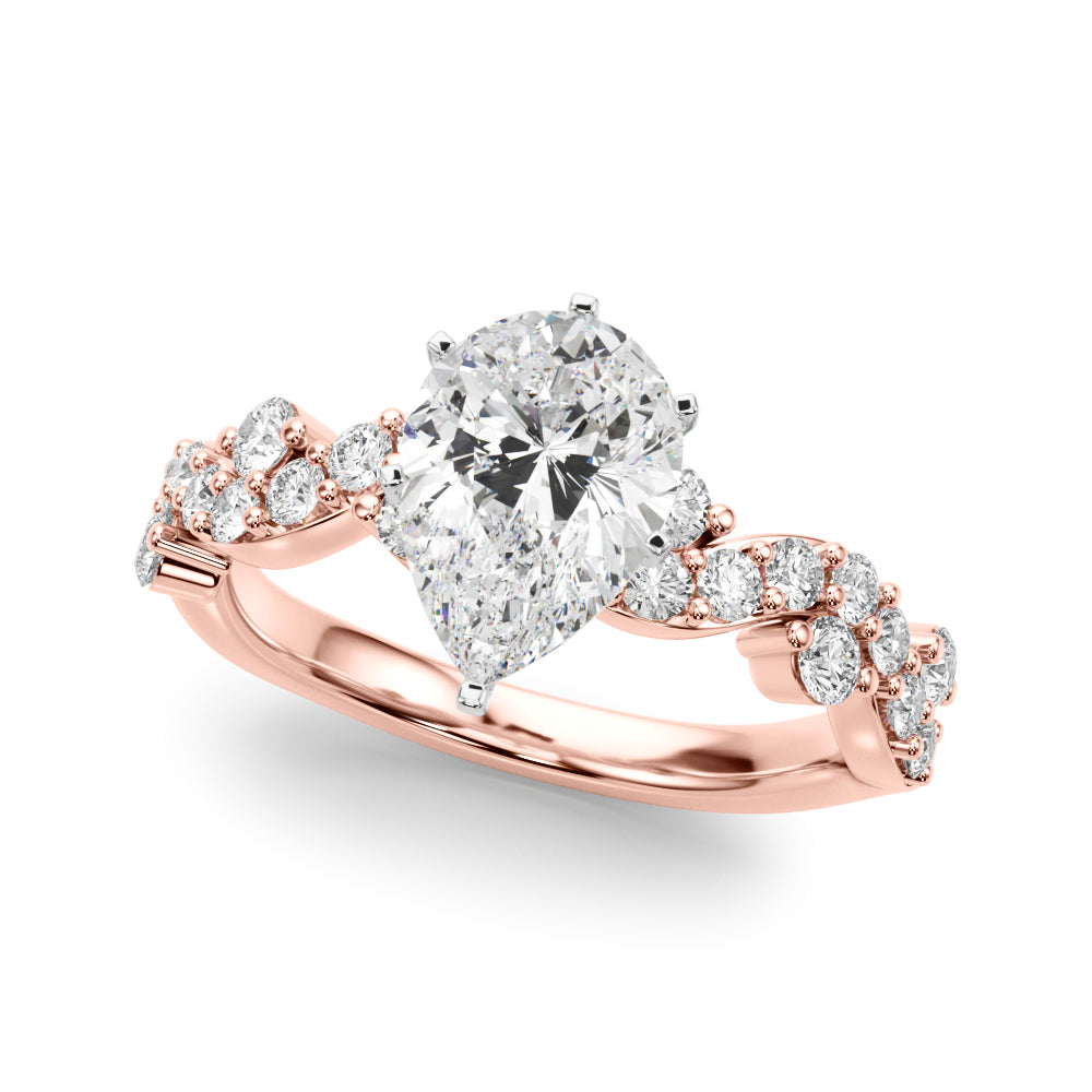 Rose gold Pear Cut Solitaire Diamond Twisted Band with Pave Setting