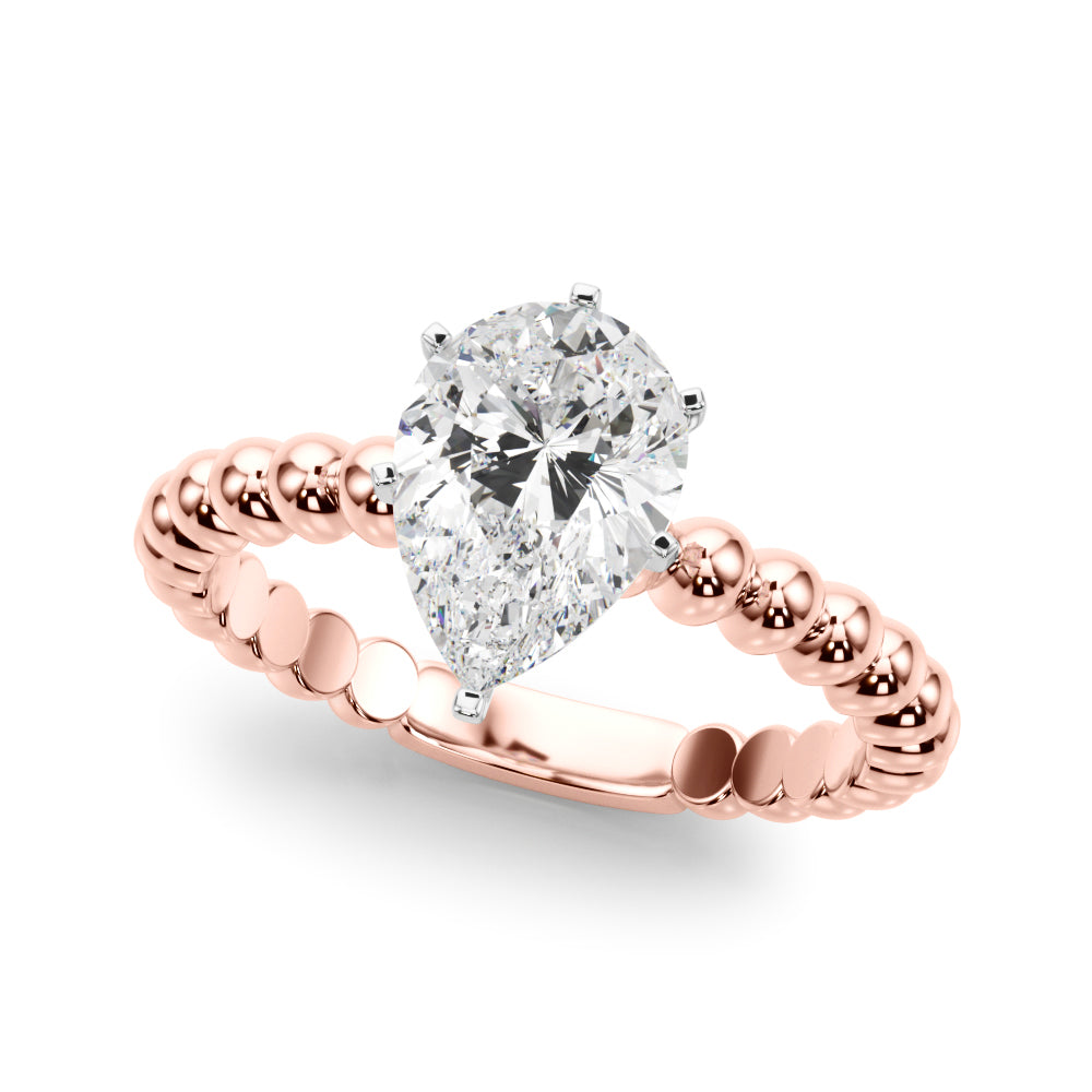 Rose gold Pear Solitaire Beaded Band Prong Setting Ring