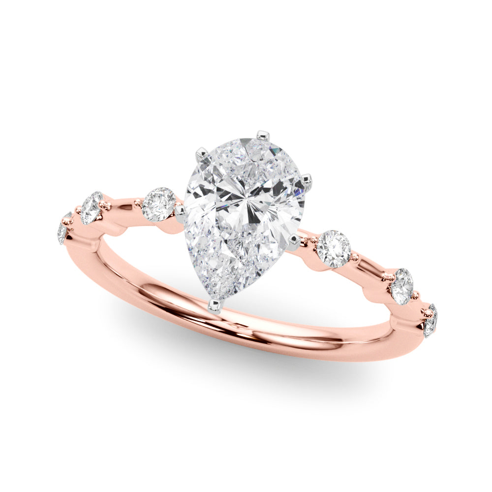 Rose gold Pear Solitaire Diamond Ring with Bezel Set Side Stones and Prong Setting