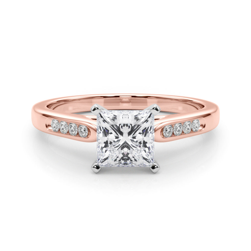 Rose gold Princess Cut Channel Set Solitaire Engagement Ring with Four-Prong Setting