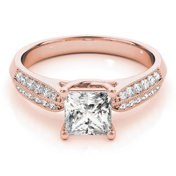Rose gold Princess Cut Pave Split Shank Engagement Ring with Four-Prong Setting