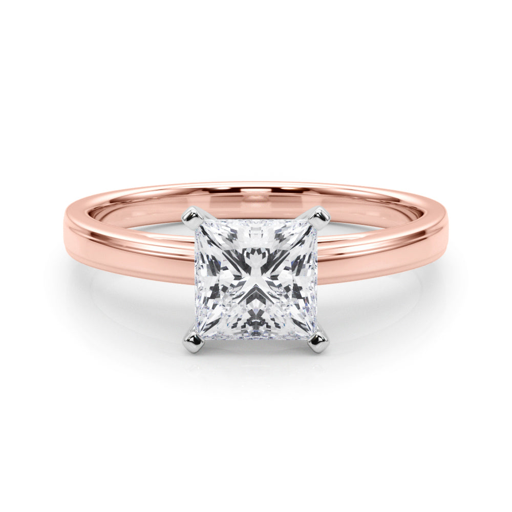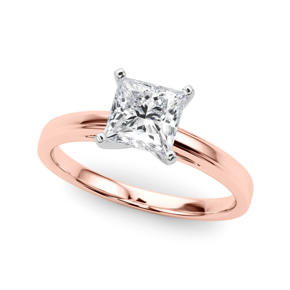 Rose gold Princess Solitaire Diamond Ring with Four-Prong Setting and Classic Band