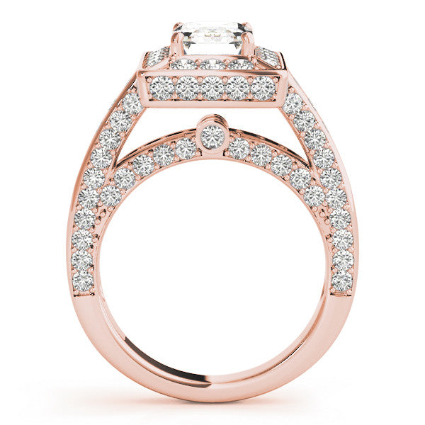 Rose gold Radiant Cut Halo Pave Split Shank Prong Setting Ring