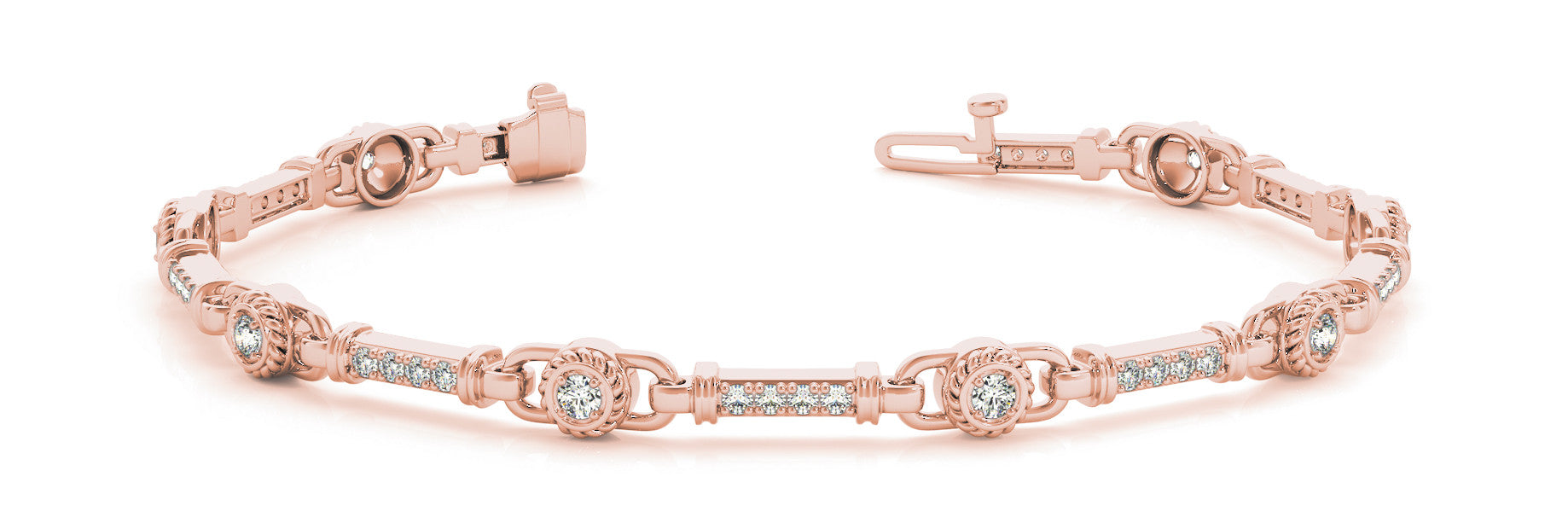 Rose gold Round Bezel-Set Diamond Tennis Bracelet with Pave Band