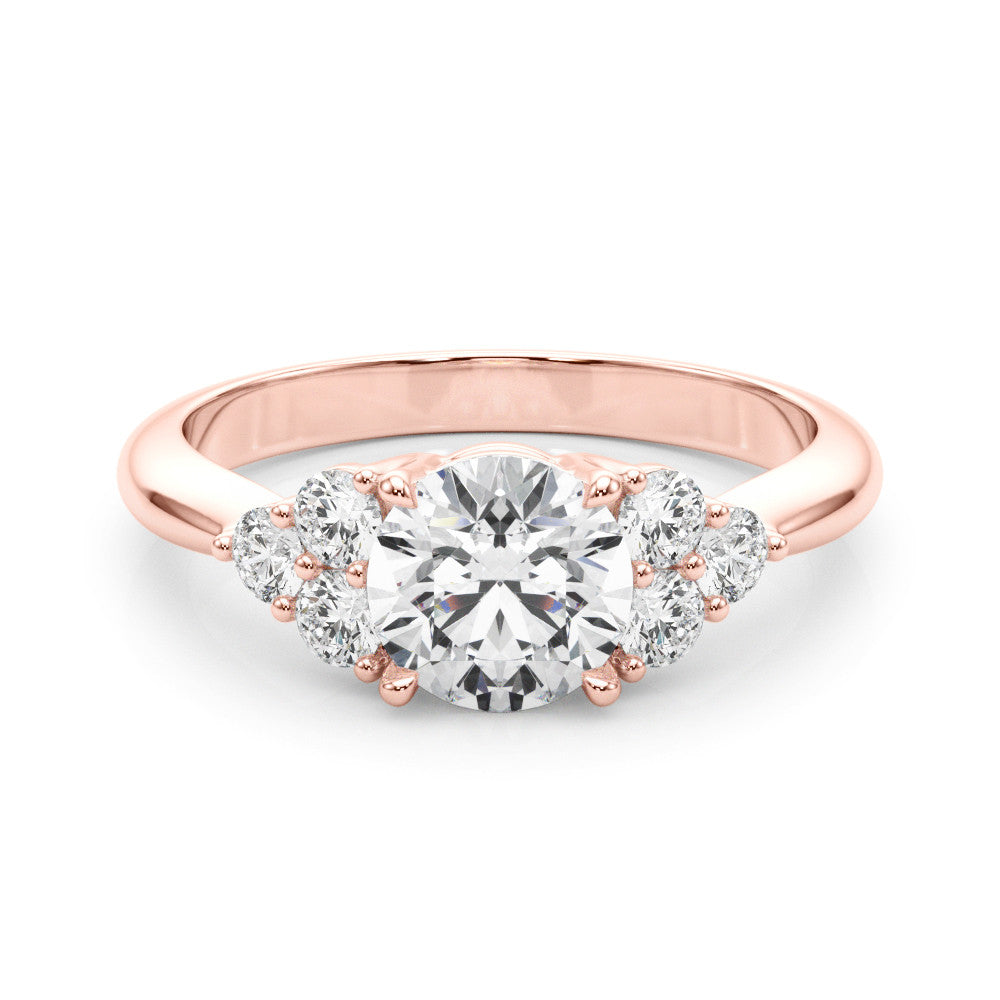 Rose gold Round Brilliant Diamond Cluster Accent Solitaire Ring with Prong Setting