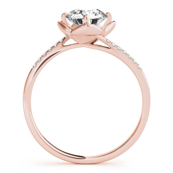 Rose gold Round Brilliant Solitaire with Pavé Band and Four-Prong Cushion Setting