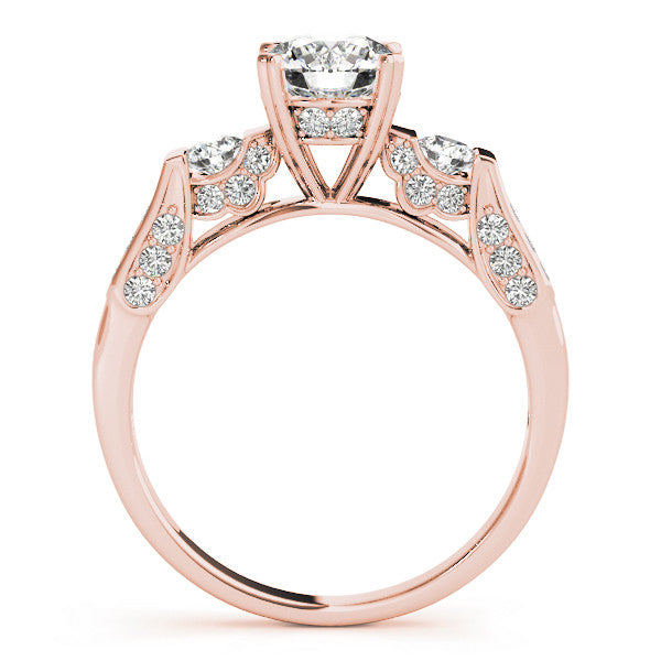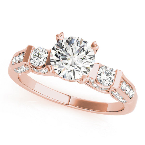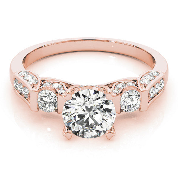 Rose gold Round Brilliant Three-Stone Pave Band with Four-Prong Setting