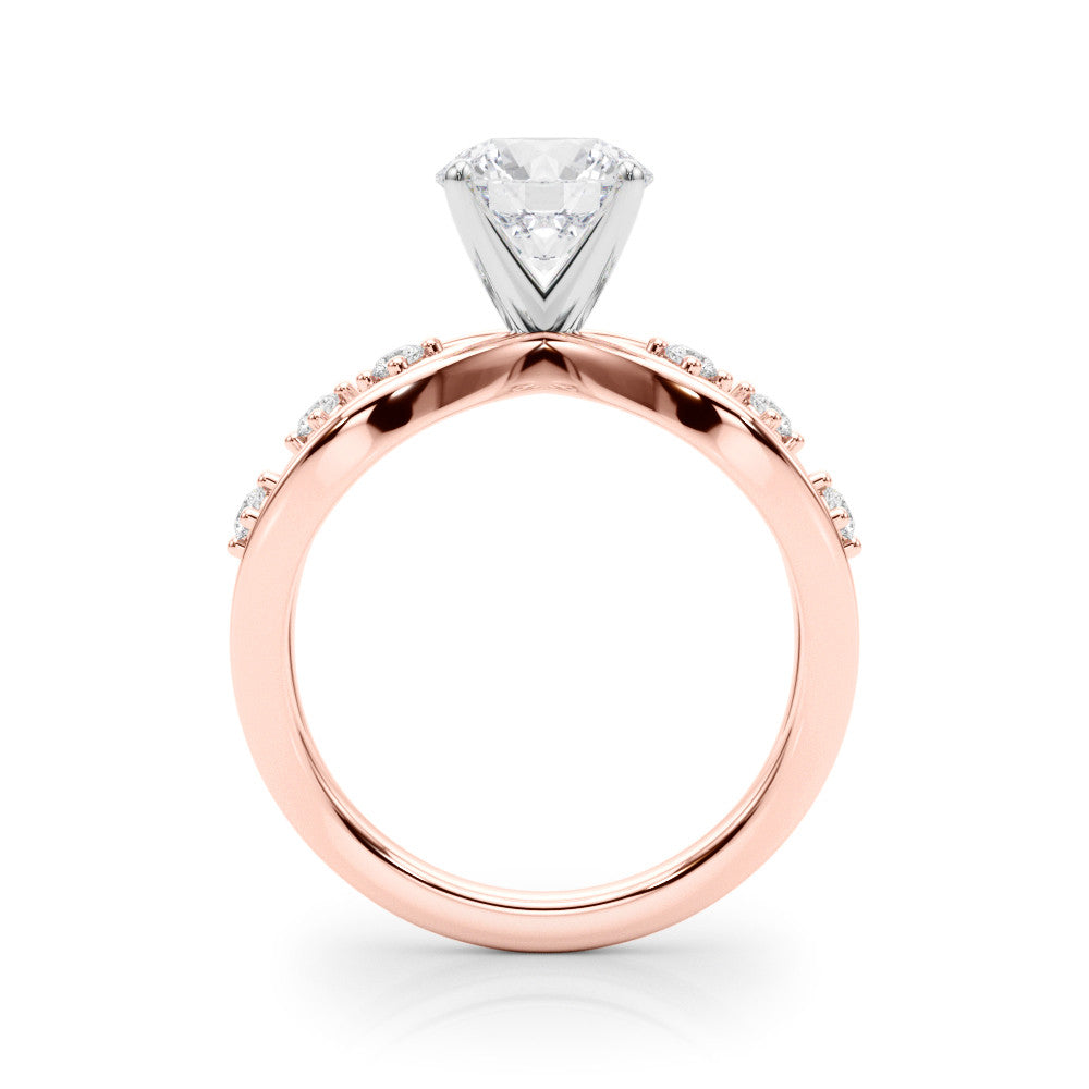 Rose gold Round Cut Solitaire Diamond with Side Stones on Criss-Cross Band and Four-Prong Setting