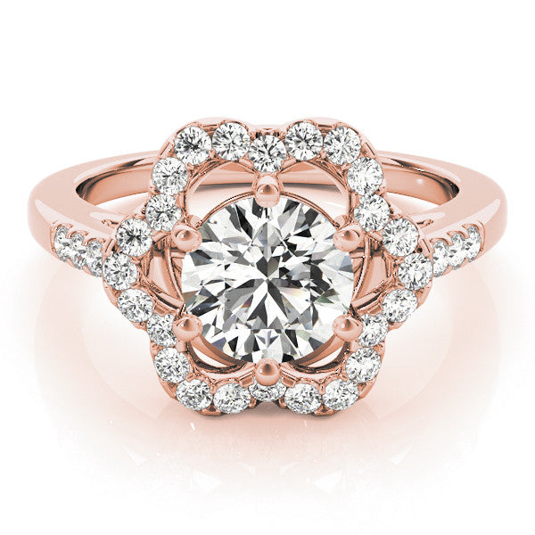 Rose gold Round Diamond Floral Halo Split Shank Prong Setting Ring