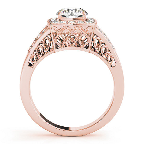 Rose gold Round Halo Split Shank Diamond Ring with Milgrain Prong Setting