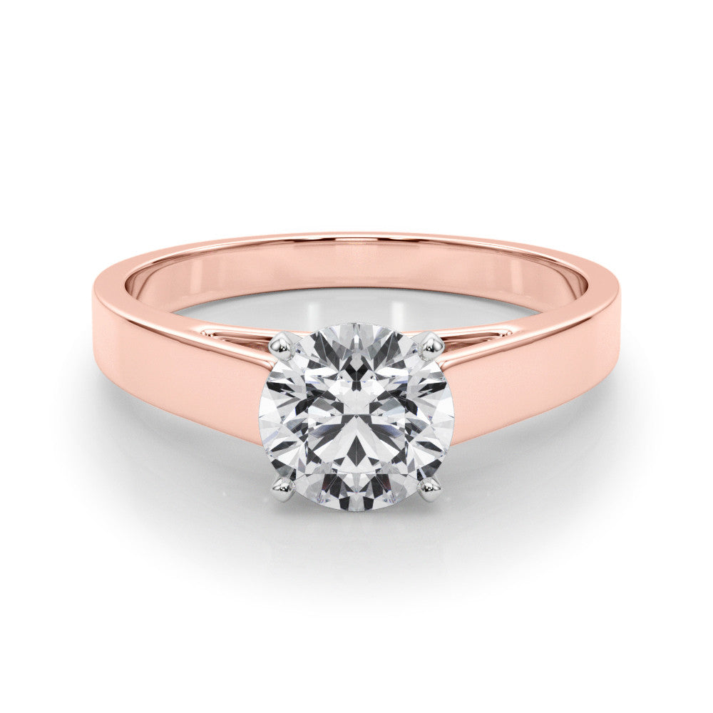Rose gold Round Solitaire Engagement Ring with Four-Prong Setting and Tapered Band