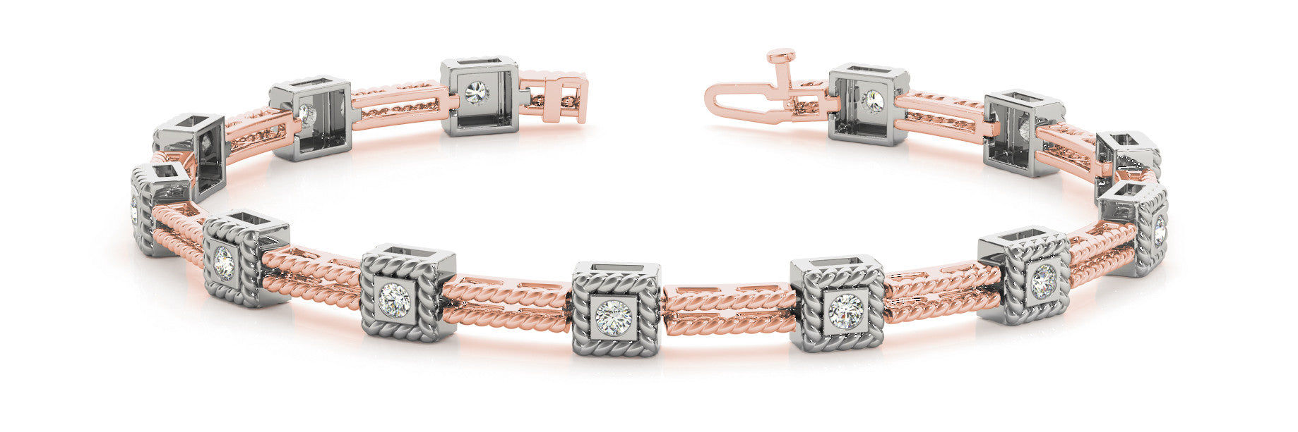 Rose gold Square Bezel Set Round Diamond Rope Link Bracelet