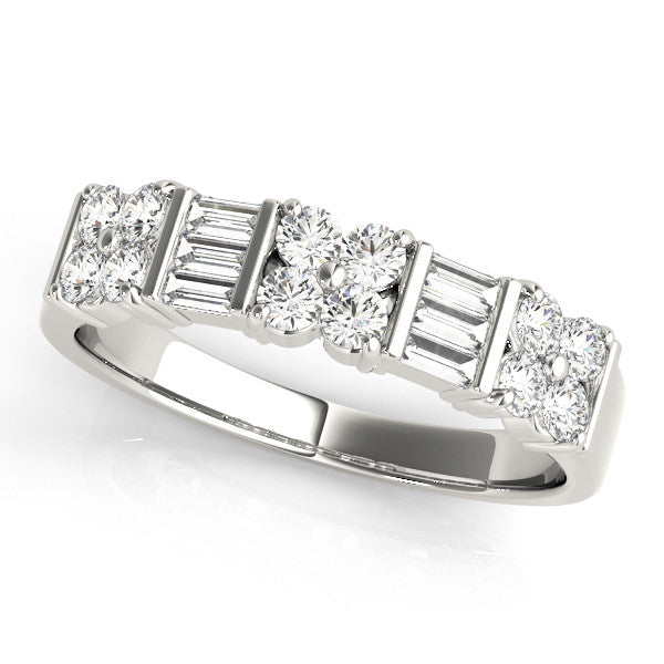 Silver Channel Set Round and Baguette Diamond Anniversary Band with Prong Setting