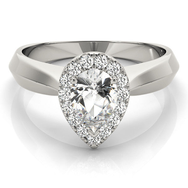 Silver Halo Pear Cut Solitaire Diamond Ring with Prong Setting