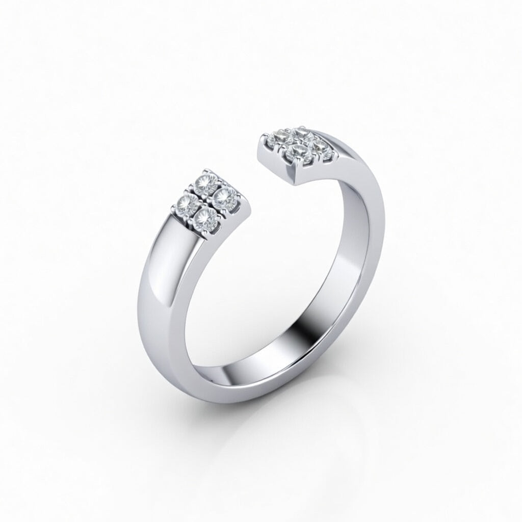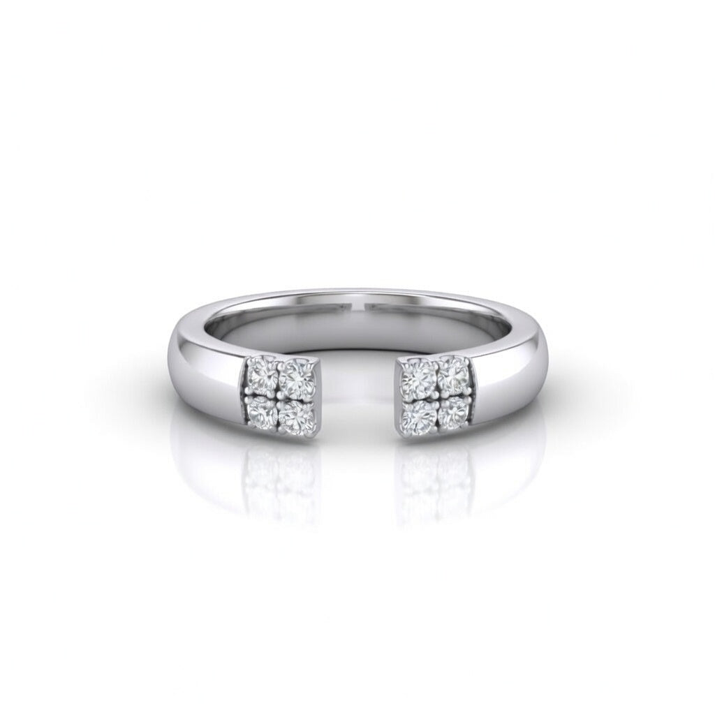 Silver Open Cuff Wedding Band With Diamond Cluster Ends