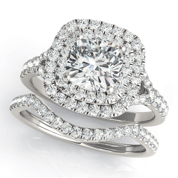 Silver Oval Cut Double Halo Pave Band Prong Setting Ring
