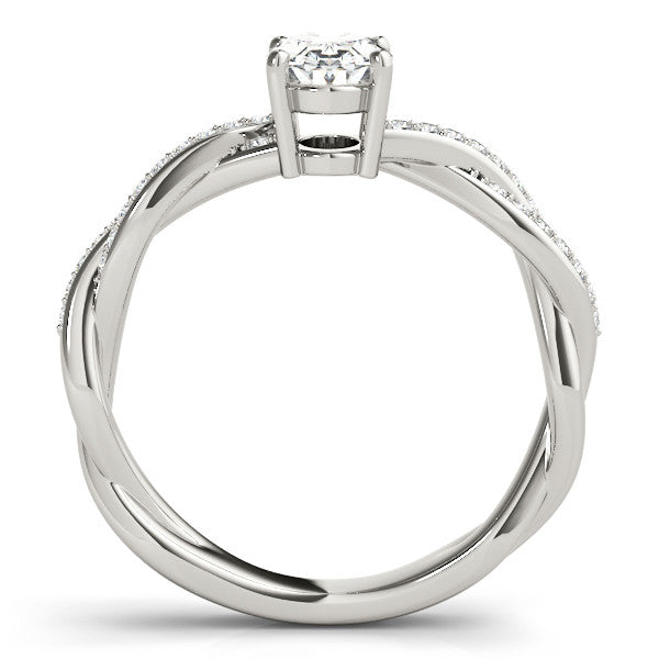 Silver Oval Solitaire Twisted Pave Diamond Ring with Four-Prong Setting