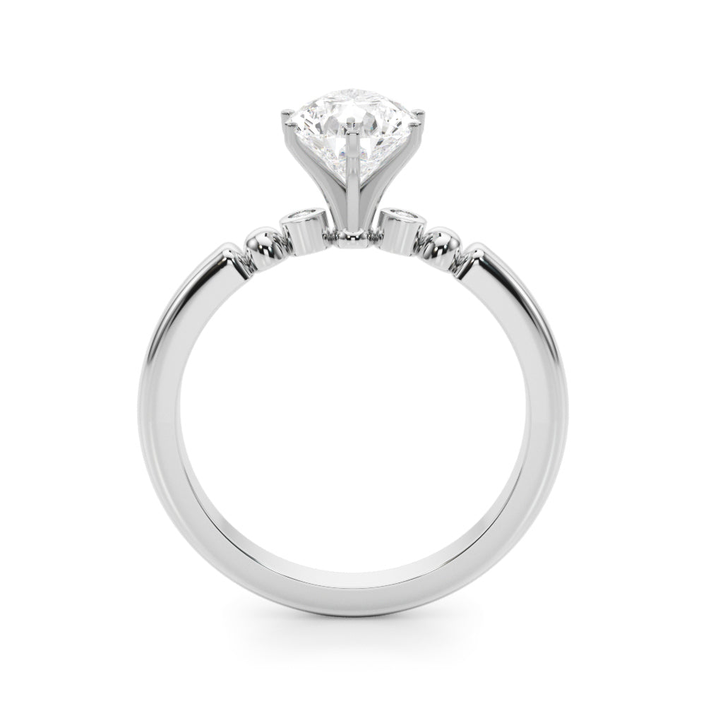 Silver Pear Solitaire Beaded Band with Four-Prong Setting