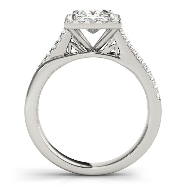 Silver Princess Cut Halo Diamond Ring with Split Shank and Four-Prong Setting