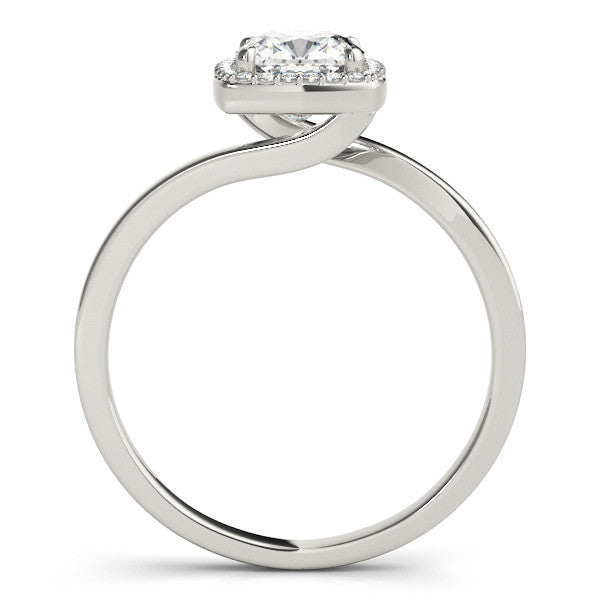 White gold Cushion Halo Solitaire Engagement Ring with Round Diamond and Four-Prong Setting