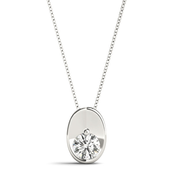 This exquisite pendant features a stunning round cut diamond, elegantly set within a sleek half bezel setting. The minimalist design showcases the brilliance of the diamond, allowing it to capture and reflect light beautifully. Suspended from a delicate chain, this pendant offers a modern yet timeless appeal, making it a perfect accessory for any occasion. Crafted with precision and care, this piece is an embodiment of elegance and sophistication.