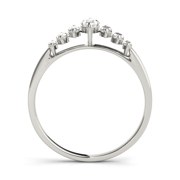 This elegant white gold band features a stunning array of marquise-shaped diamonds, meticulously prong-set to create a shimmering display of brilliance. The sleek band design perfectly complements the unique marquise cut, offering a sophisticated and timeless style. Ideal for any special occasion, this band is a beautiful symbol of elegance and grace.