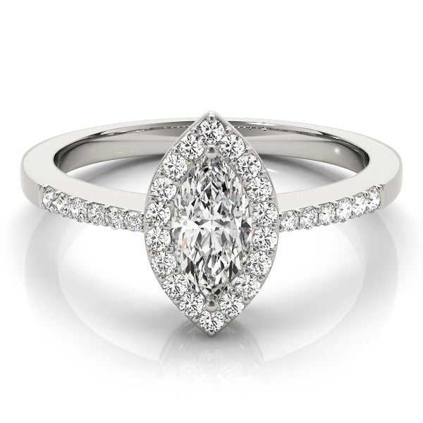 White gold Marquise Halo Diamond Pavé Band Ring with Prong Setting