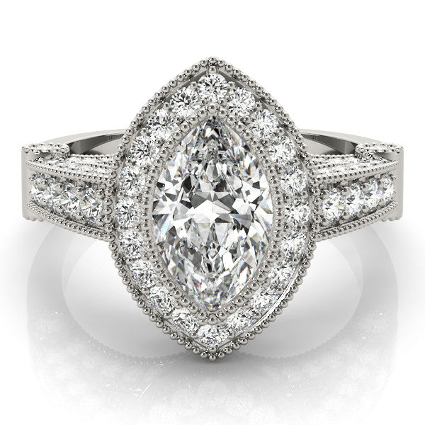 White gold Marquise Halo Diamond Split Shank Pave Ring
