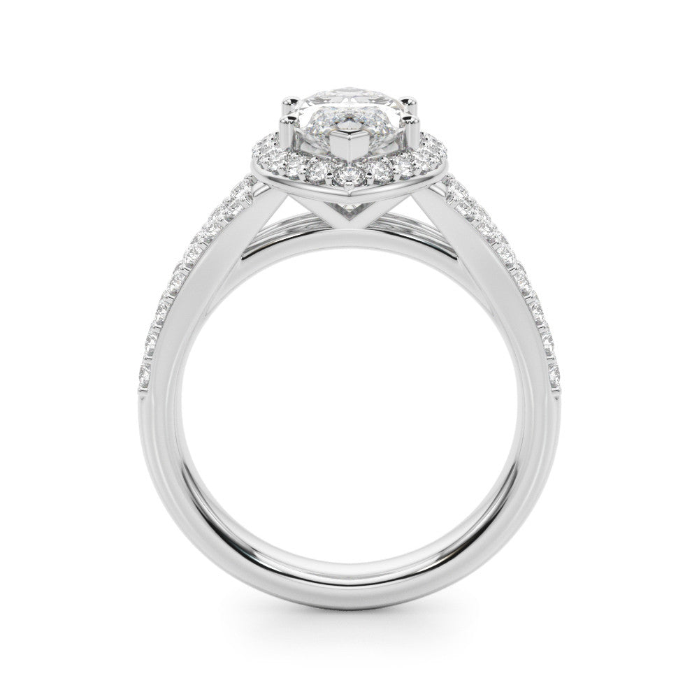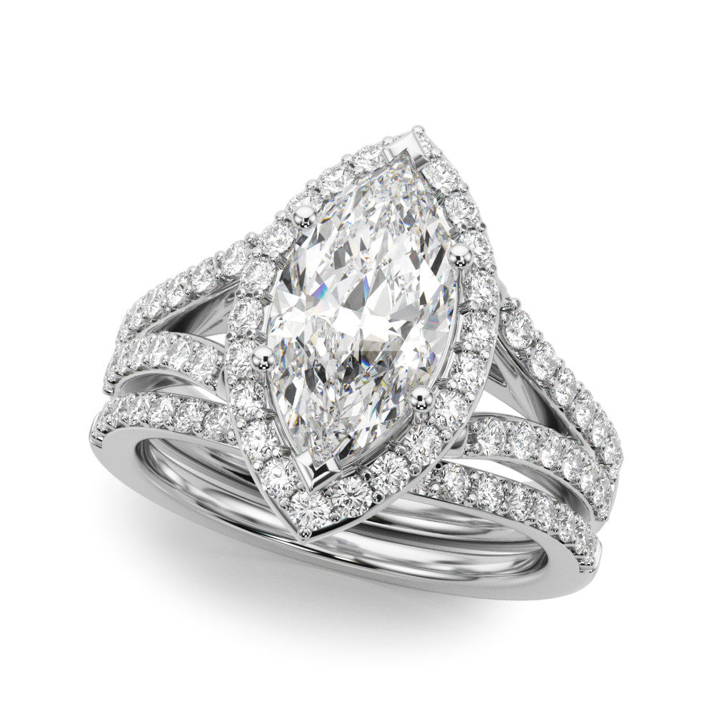 White gold Marquise Halo Split Shank Diamond Ring with Prong Setting